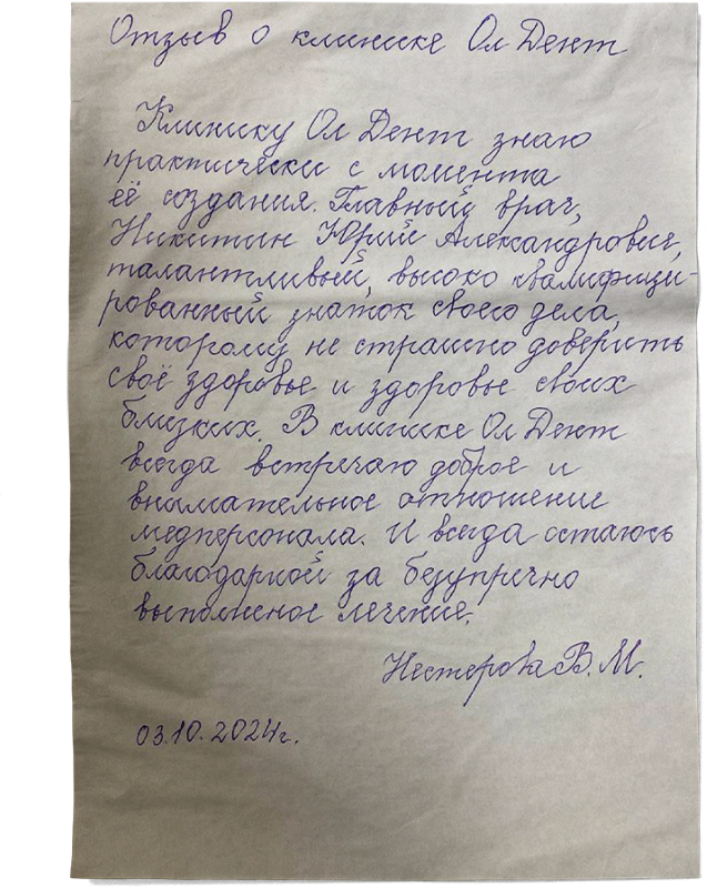 Убедиться в наших отзывах легко — просто напишите пациентам, оставившим отзывы, и поинтересуйтесь о качестве услуг и сервиса нашей стоматологии